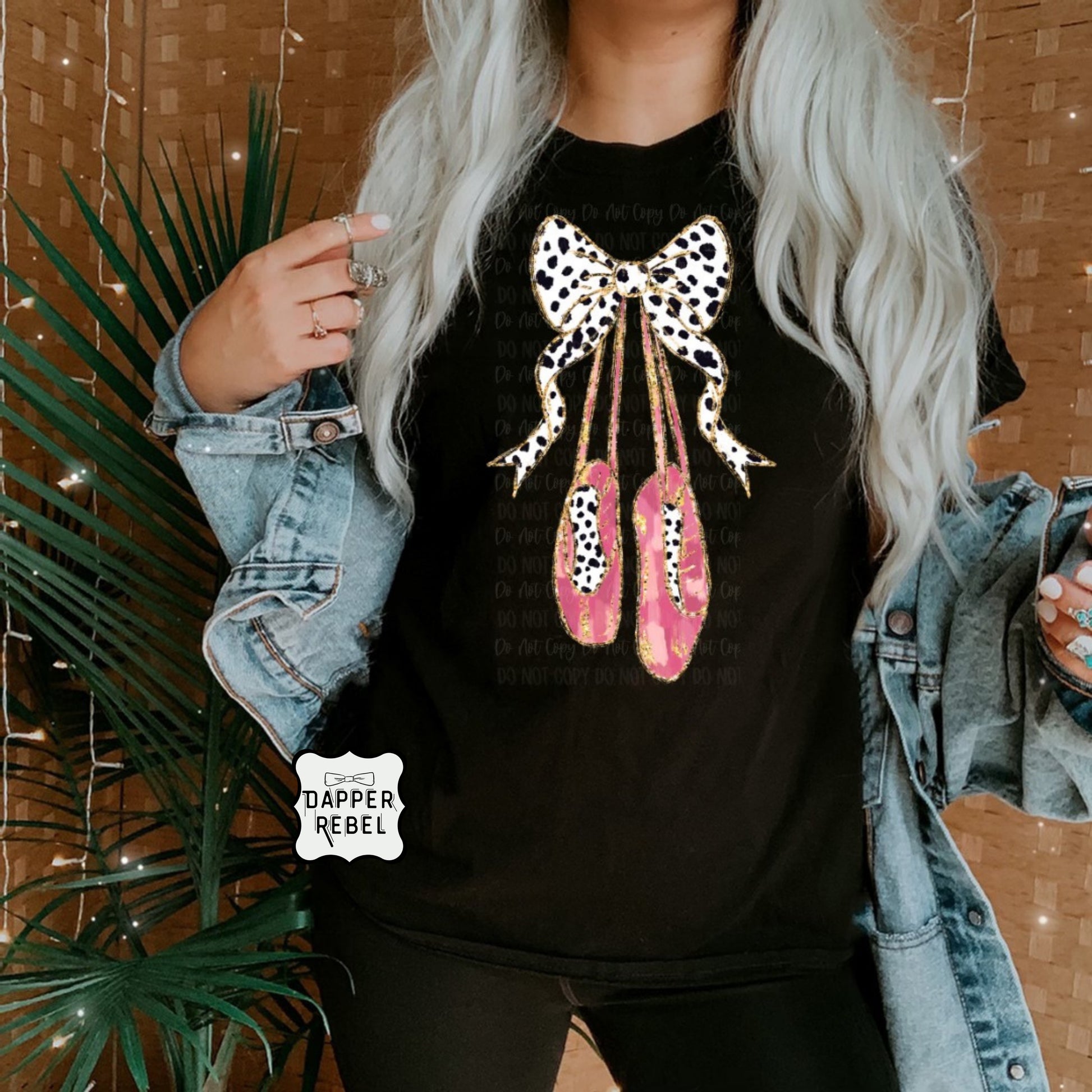 Show off your love for dance with this chic Ballet Tee. Featuring pink pointe shoes tied with a bold spotted bow, this soft unisex shirt is perfect for dancers, teachers, or anyone who loves ballet style.
