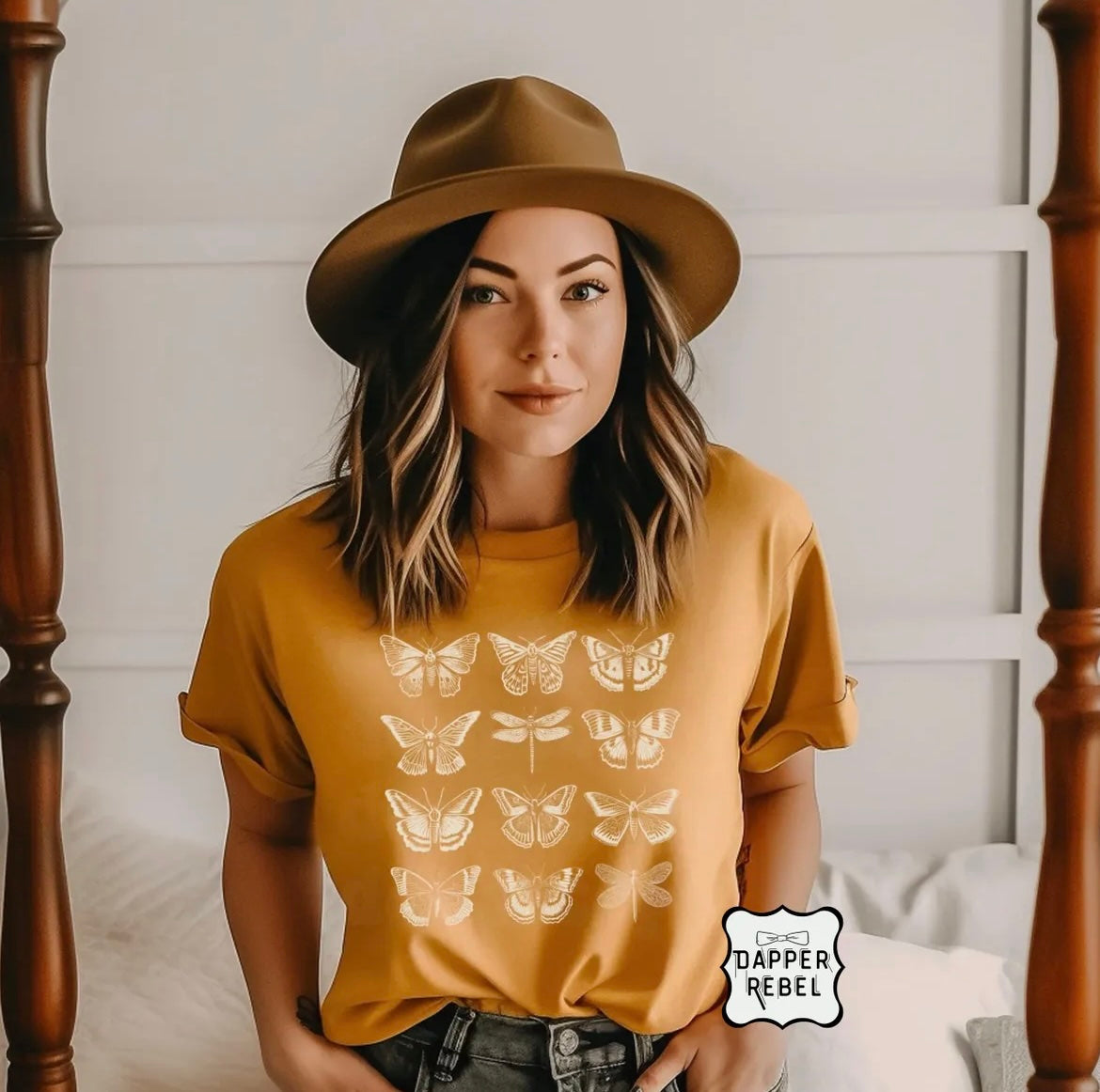 Effortless charm meets boho style with our Butterfly Graphic Tee. This golden mustard shirt features a delicate lineup of hand-drawn butterflies that bring a soft, vintage vibe to your everyday look. Perfect for free spirits, dreamers, and anyone who loves nature-inspired style.