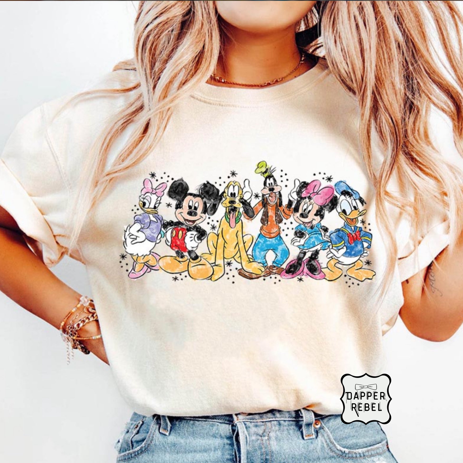 Celebrate the magic of friendship with this adorable Classic Friends Tee! Featuring a hand-drawn, watercolor-style design of your favorite animated pals, this shirt radiates cheerful nostalgia and timeless charm.