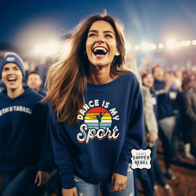 Show your pride and passion with the Dance Is My Sport Sweatshirt! Featuring a retro sunset graphic and bold lettering, this cozy pullover celebrates dancers who put in the same heart, dedication, and athleticism as any sport.