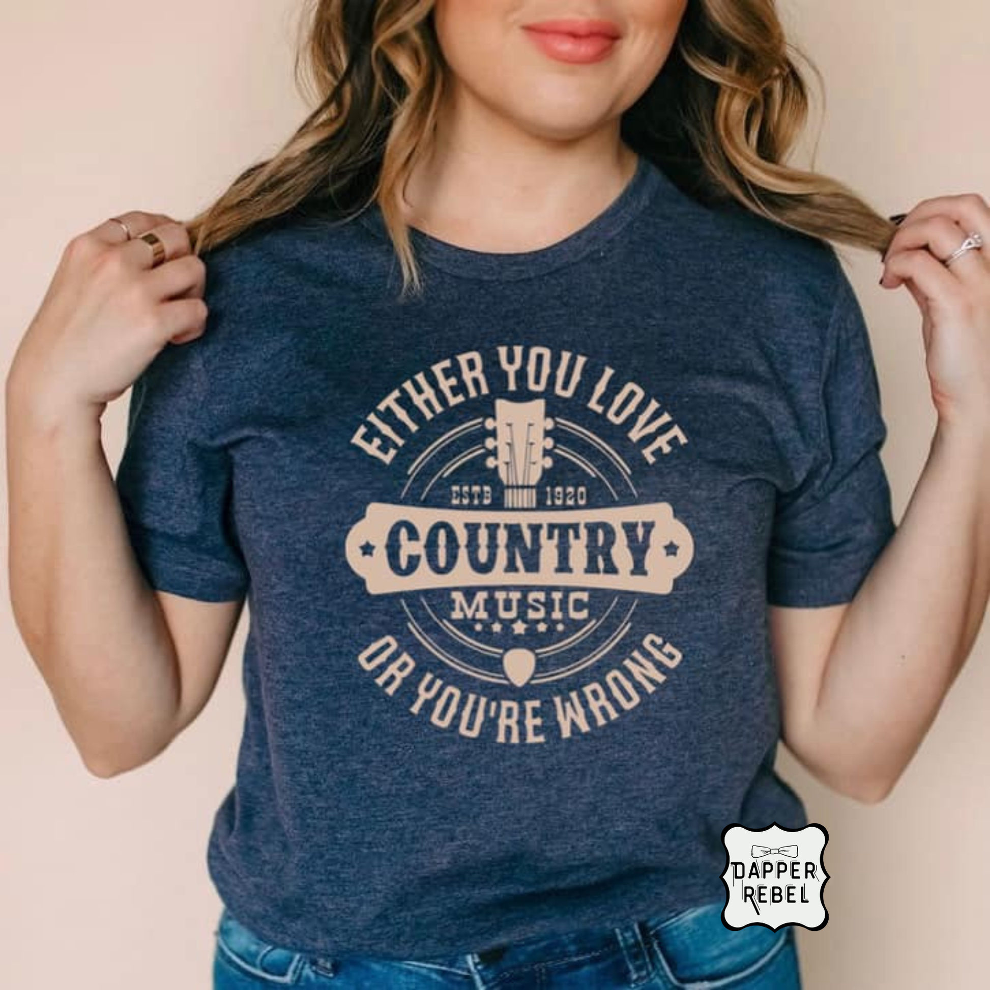 This charming heather maroon sweatshirt is a must-have for any country music fan! Boldly declaring "Either You Love Country Music or You're Wrong," this sweatshirt combines humor and pride in a statement piece that's perfect for concerts, festivals, or just casual wear. The vintage-style typography and guitar graphic add a touch of rustic authenticity, echoing the spirit of classic country music.