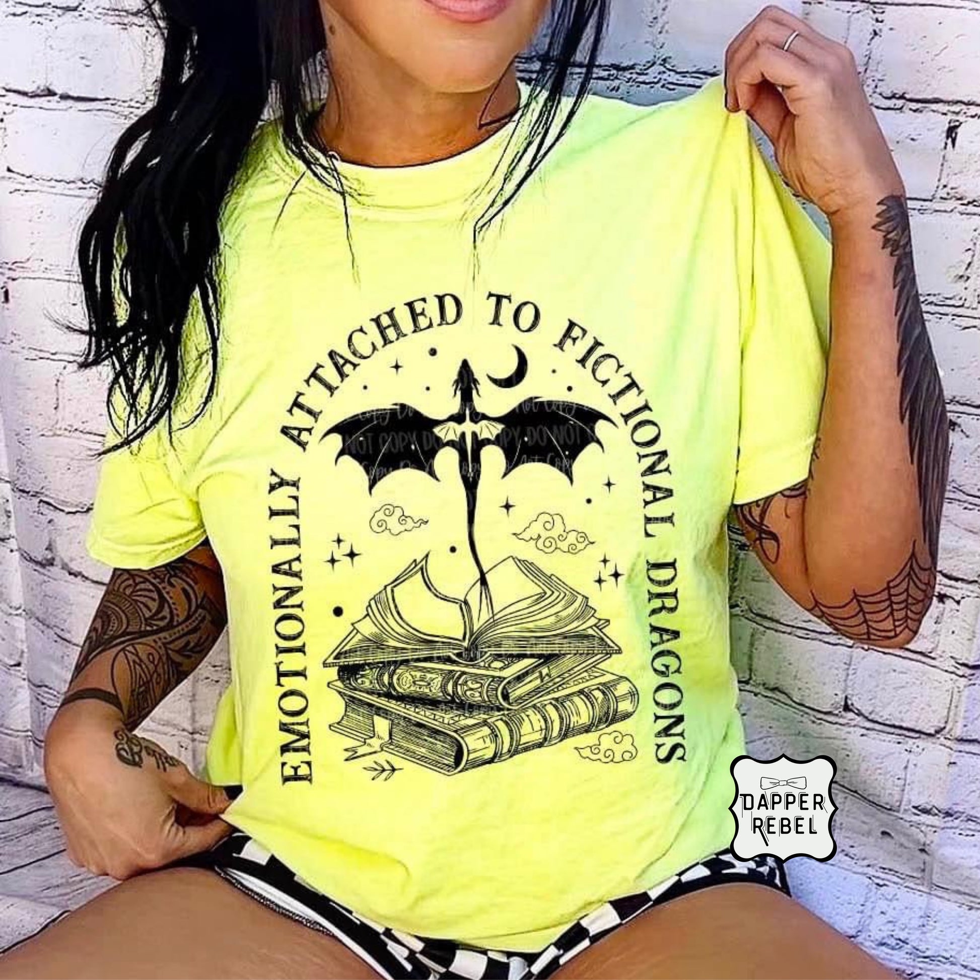 For the readers who fall in love with every dragon they meet on the page… this tee says it all. Featuring a bold dragon soaring above an open book design with celestial accents, this shirt is perfect for fantasy fans who live for magical worlds and unforgettable creatures.