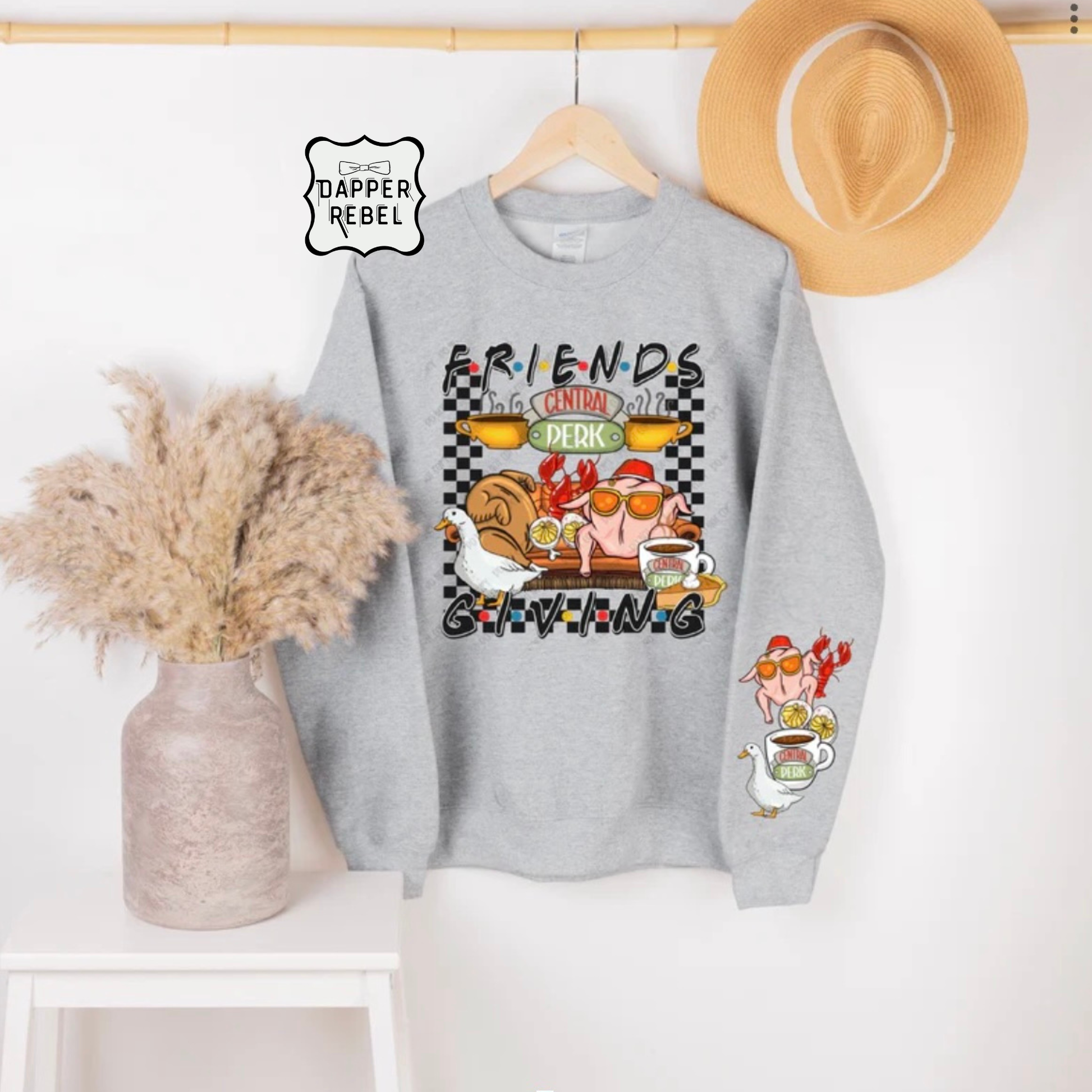 Your favorite Thanksgiving episode vibes, but make it cozy. This “Friendsgiving” sweatshirt features a fun, colorful design inspired by everyone’s favorite coffee shop hangout, complete with all the quirky holiday details that make Friendsgiving the best kind of tradition.